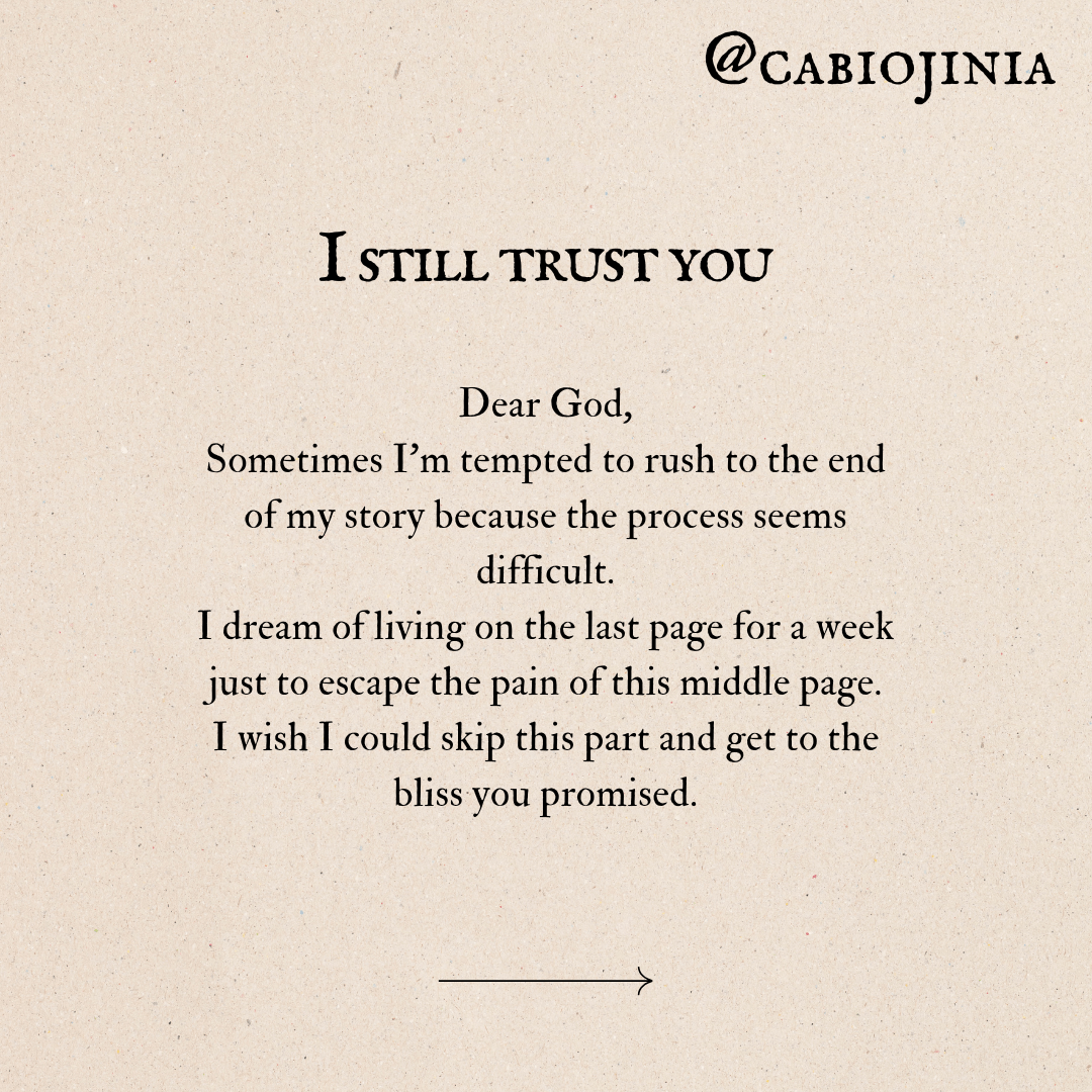 I know that if I don’t go through this process I won’t appreciate the riches of your grace when I receive them.