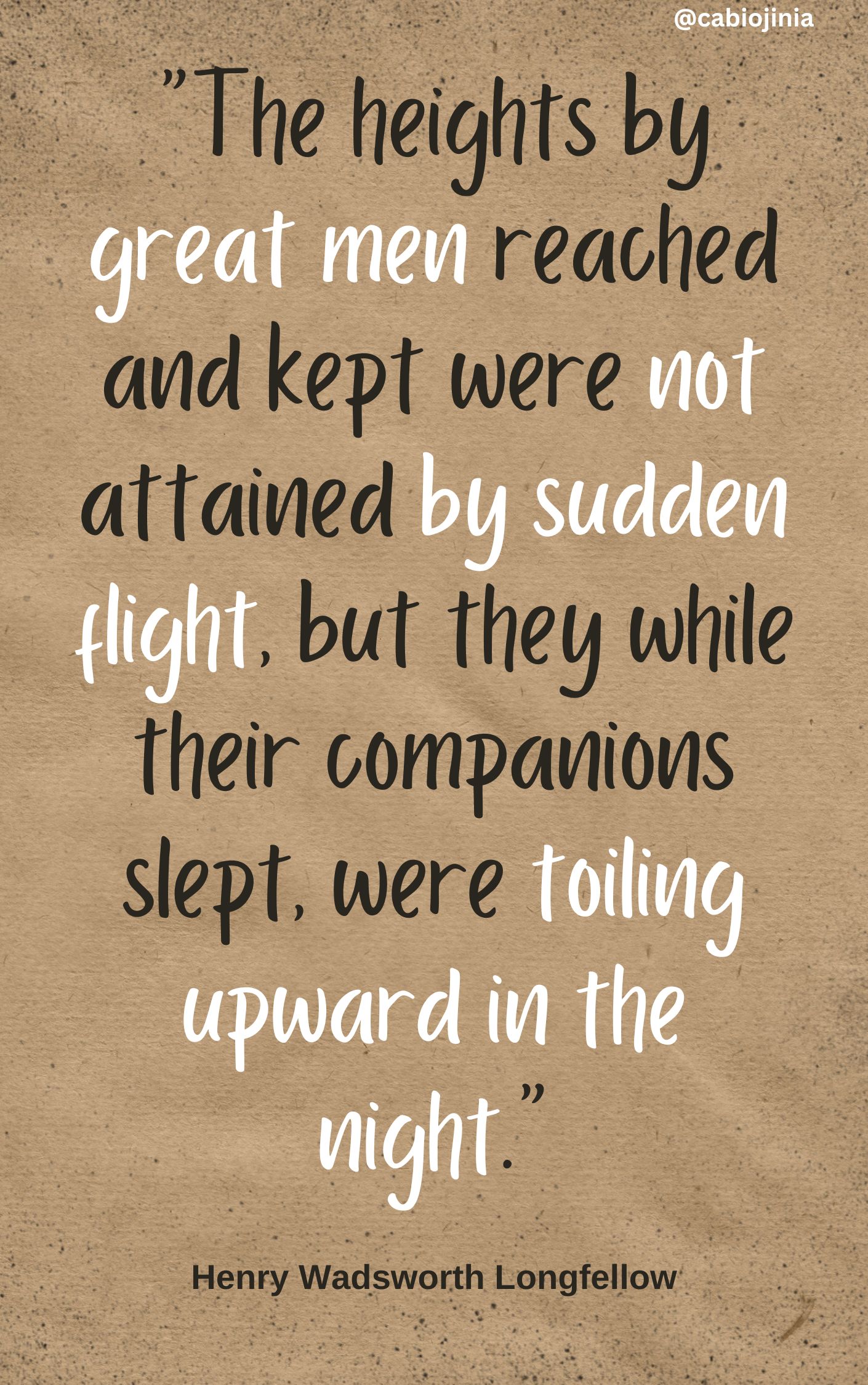 “The heights by great men reached and kept were not attained by sudden flight, but they while their companions slept, were toiling upward in the night.”